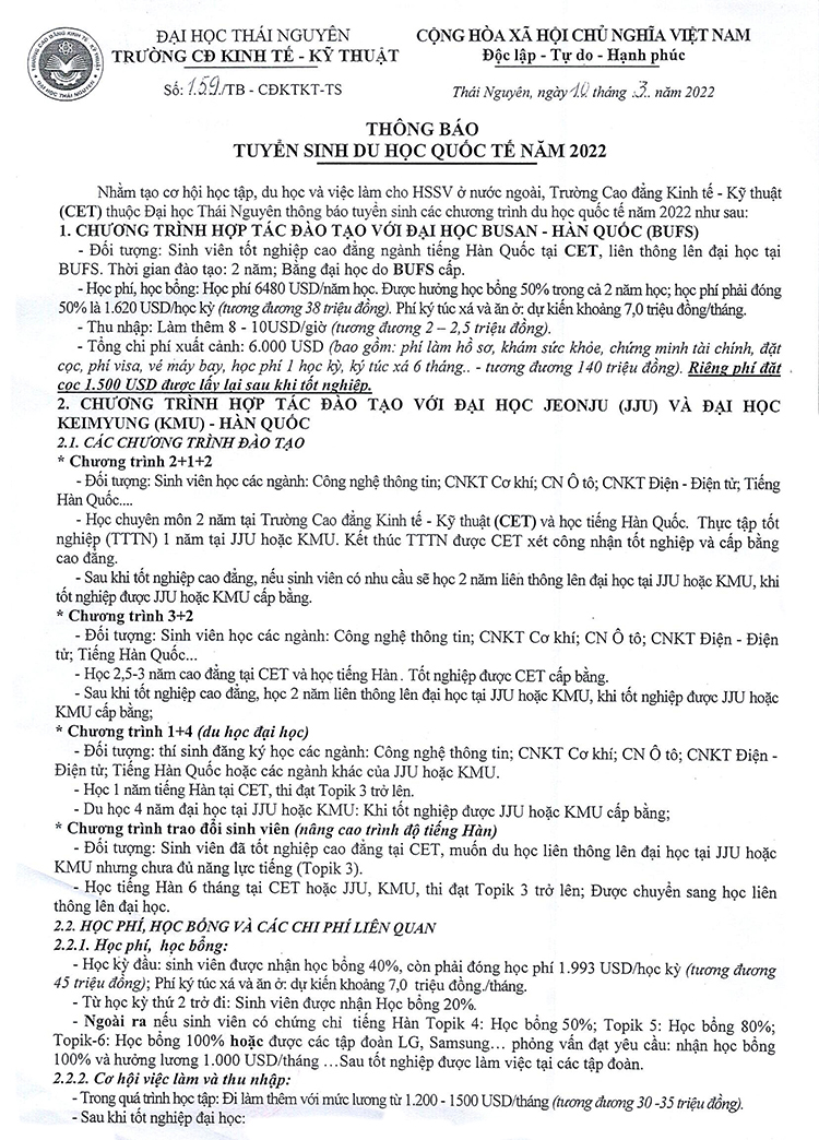 Thông báo tuyển sinh du học Hàn Quốc 2022